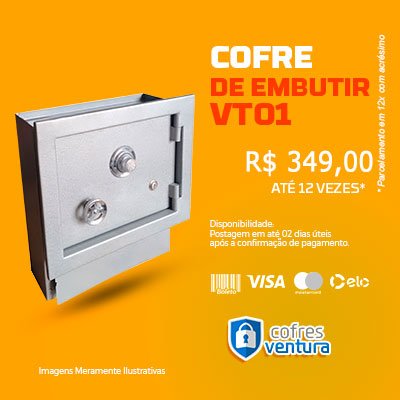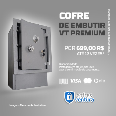 Cofre Digital de Embutir VT Premium Com 02 Fundos...