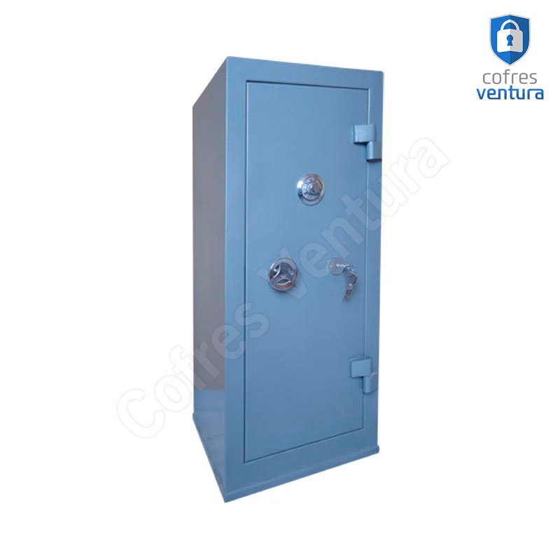 ESTRUTURA DO COFRE | Revestido internamente com concreto de alta densidade Possui um sistema anti-arrombamento que garante a segurança do conteúdo do cofre mesmo que as dobradiças (gonzos) sejam danificadas; Trava com 03 ferrolhos de aço de 23 mm de diâmetro; |