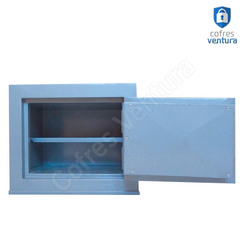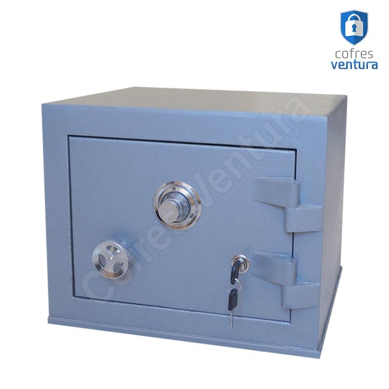 ESTRUTURA DO COFRE | Revestido internamente com concreto de alta densidade Possui um sistema anti-arrombamento que garante a segurança do conteúdo do cofre mesmo que as dobradiças (gonzos) sejam danificadas; Trava com 02 ferrolhos de aço de 18 mm de diâmetro; |