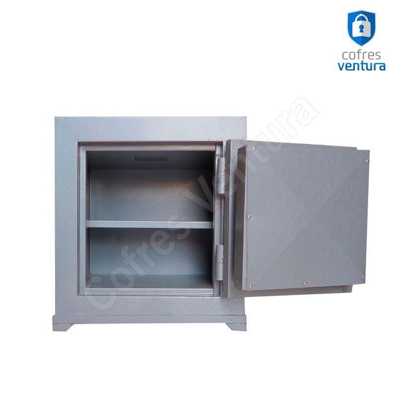 ESTRUTURA DO COFRE | Gabinete fabricado em chapa de aço de alta espessura e a porta em chapa de aço de 2,0 mm; Revestido internamente com concreto de alta densidade Possui um sistema anti-arrombamento que garante a segurança do conteúdo do cofre mesmo que as dobradiças (gonzos) sejam danificadas; Trava com 02 ferrolhos de aço de 23 mm de diâmetro; |