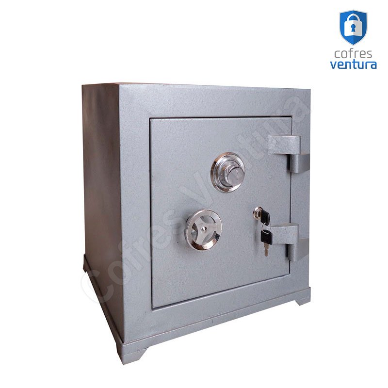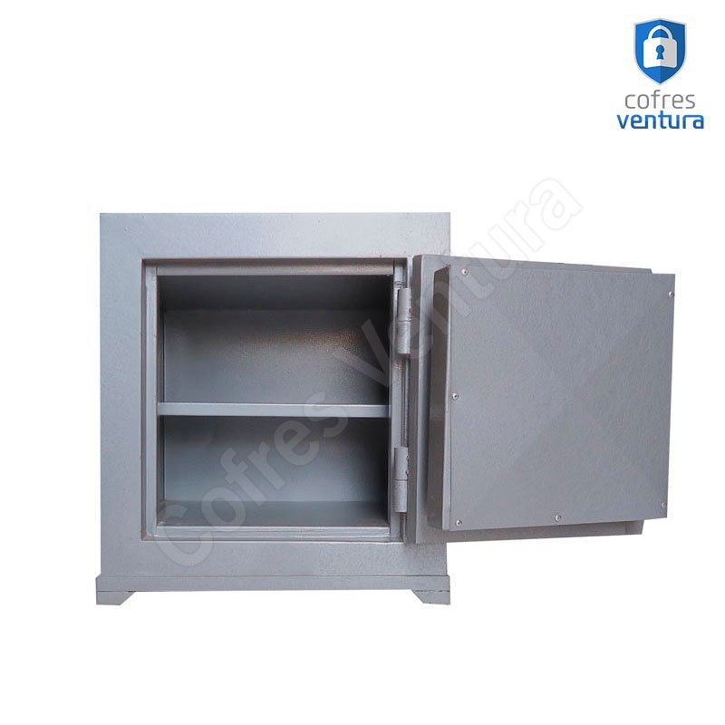 ESTRUTURA DO COFRE | Gabinete fabricado em chapa de aço de alta espessura e a porta em chapa de aço de 2,0 mm; Revestido internamente com concreto de alta densidade Possui um sistema anti-arrombamento que garante a segurança do conteúdo do cofre mesmo que as dobradiças (gonzos) sejam danificadas; Trava com 02 ferrolhos de aço de 23 mm de diâmetro; |