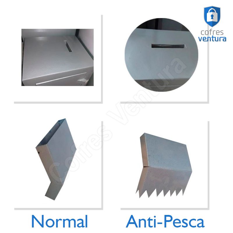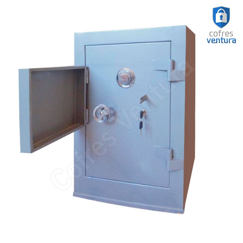 ESTRUTURA DO COFRE | Gabinete fabricado em chapa de aço de alta espessura e a porta em chapa de aço de 2,0 mm; Revestido internamente com concreto de alta densidade Possui um sistema anti-arrombamento que garante a segurança do conteúdo do cofre mesmo que as dobradiças (gonzos) sejam danificadas; Trava com 02 ferrolhos de aço de 32 mm de diâmetro; |