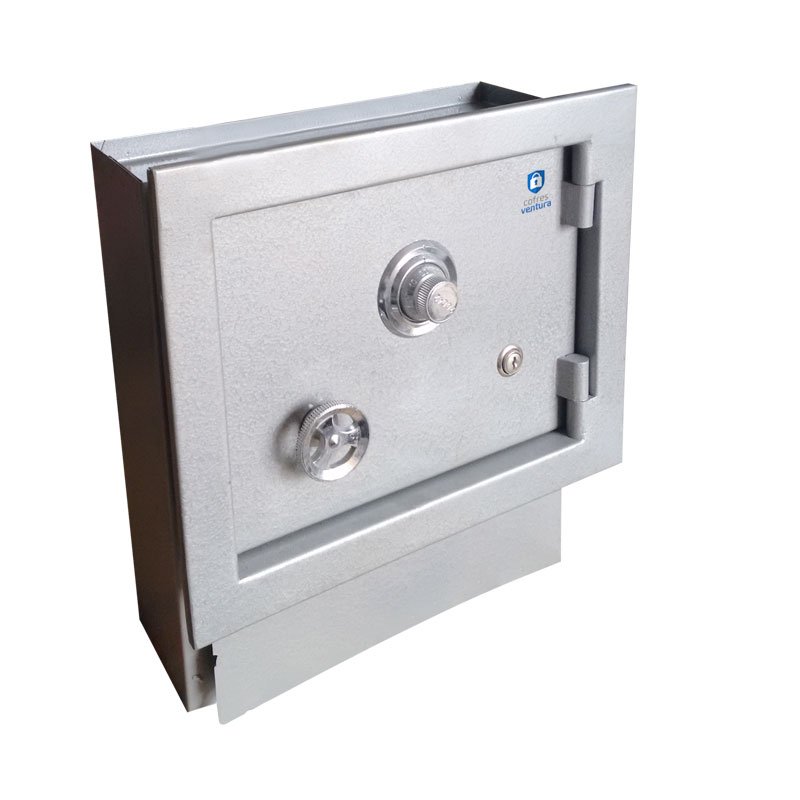 ESTRUTURA DO COFRE | Porta confeccionada em chapa de aço de 2,0mm; Fundo falso, peças de encaixe e chave de segurança |