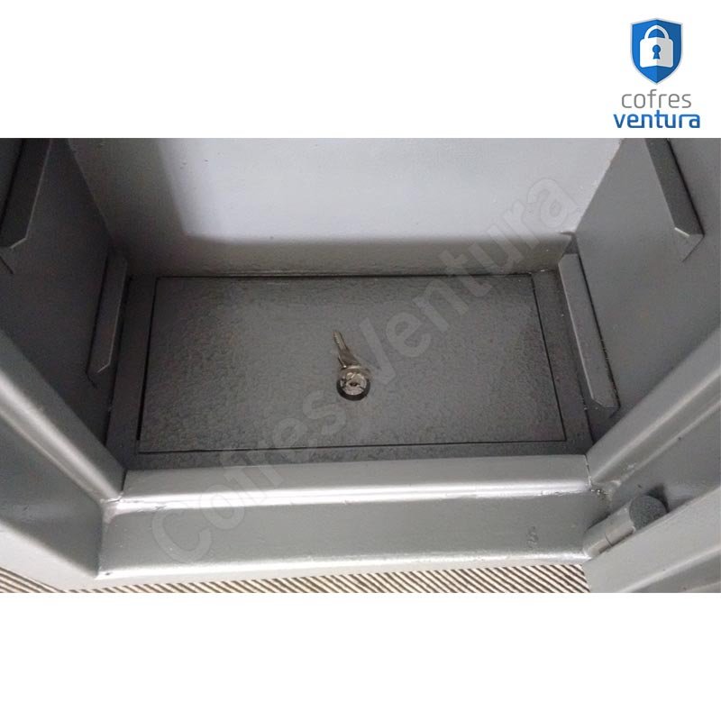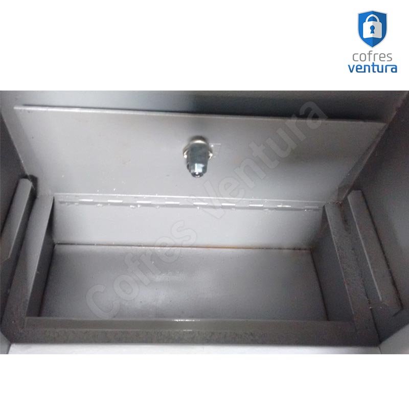 ESTRUTURA DO COFRE | Fabricado em chapa de aço de 2,0 e 3,0 mm de espessura. Fundo falso, peças de encaixe e chave de segurança |