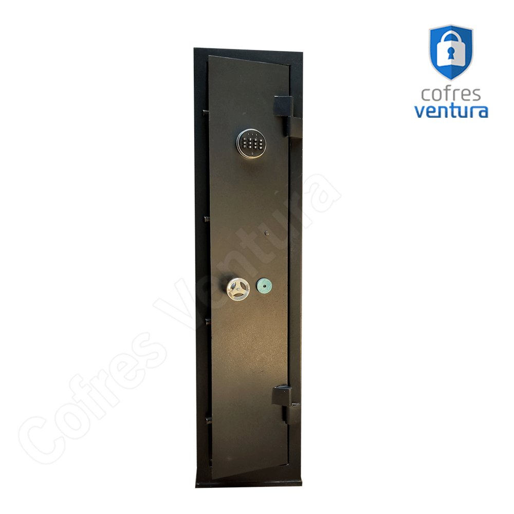 ESTRUTURA DO COFRE | Gabinete fabricado em chapa de aço com espessura de 1,2 mm e porta fabricada em chapa de aço com espessura de 3 mm; Trava com 04 ferrolhos de aço de 18mm de diâmetro; |