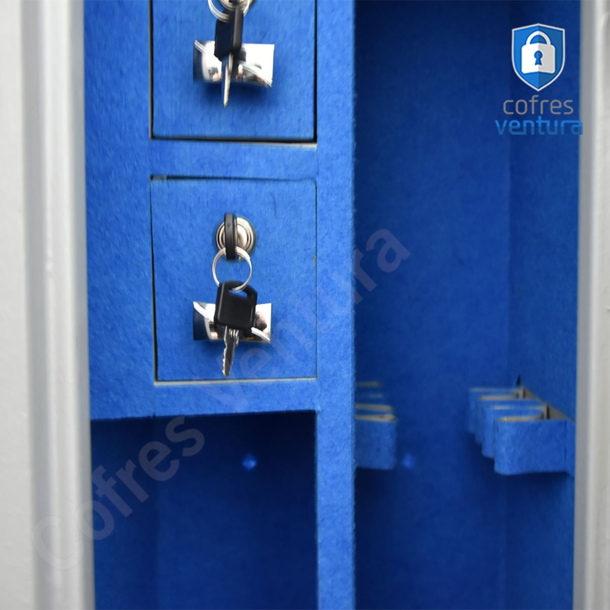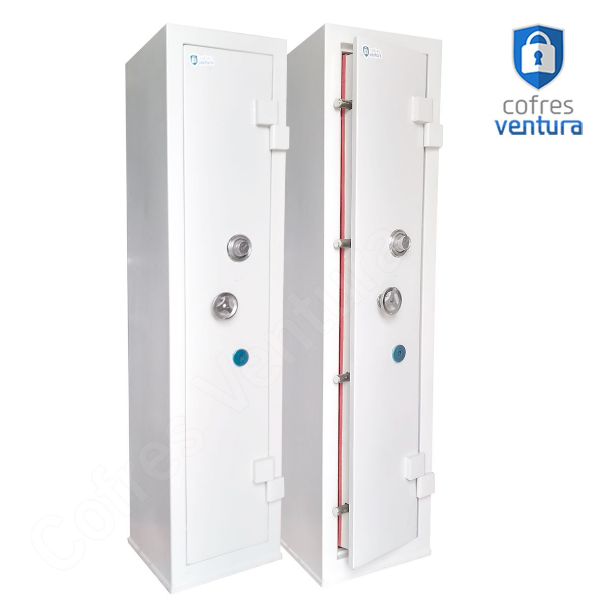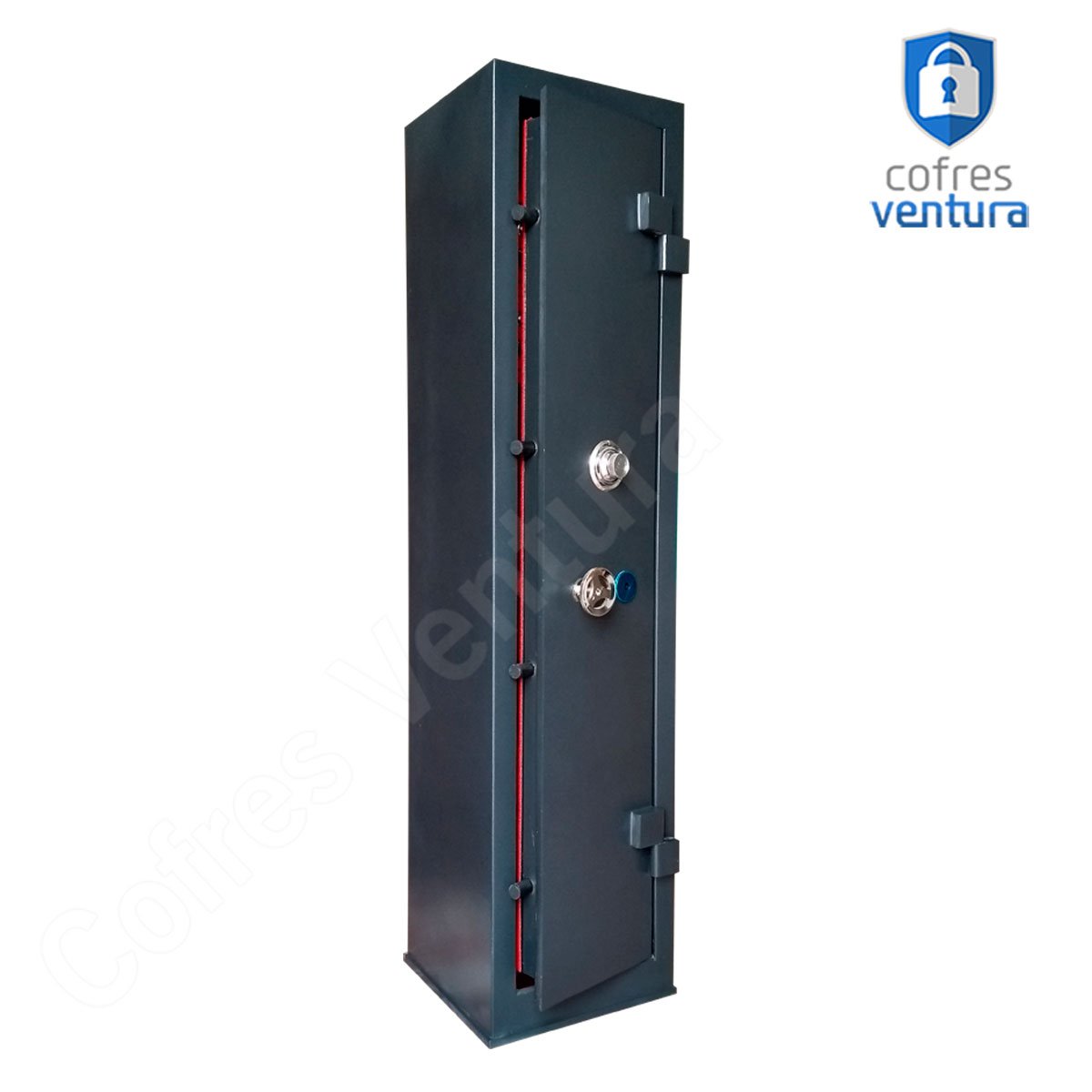 ESTRUTURA DO COFRE | Gabinete fabricado em chapa de aço com espessura de 1,27 mm; Porta fabricada em chapa de aço com espessura de 3 mm; Trava com 04 ferrolhos de aço de 23mm de diâmetro; |