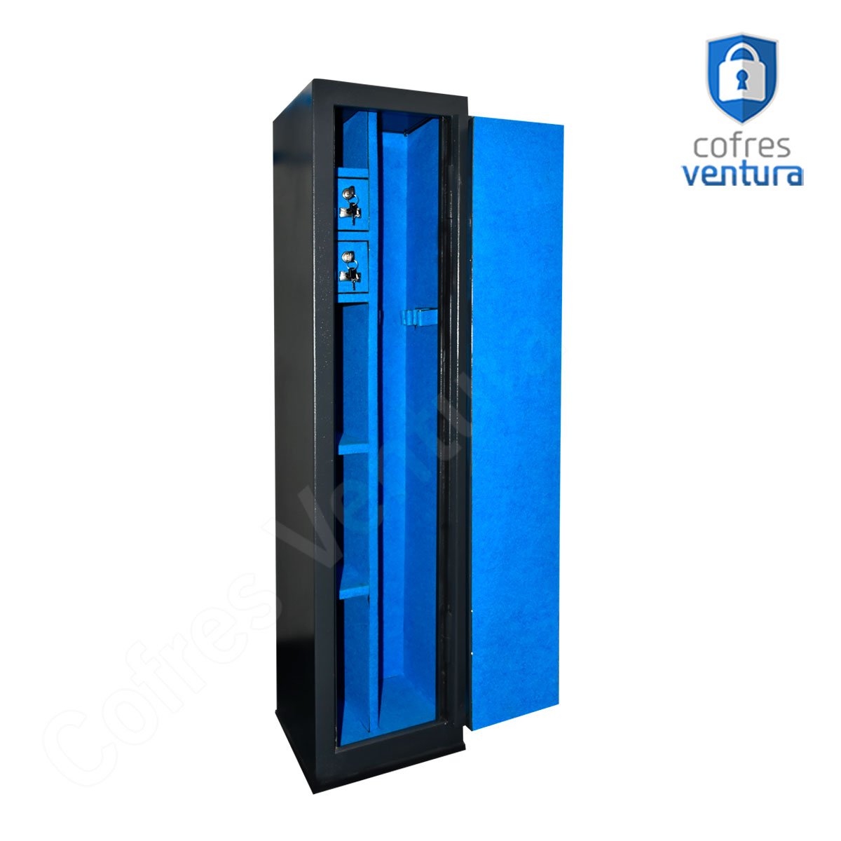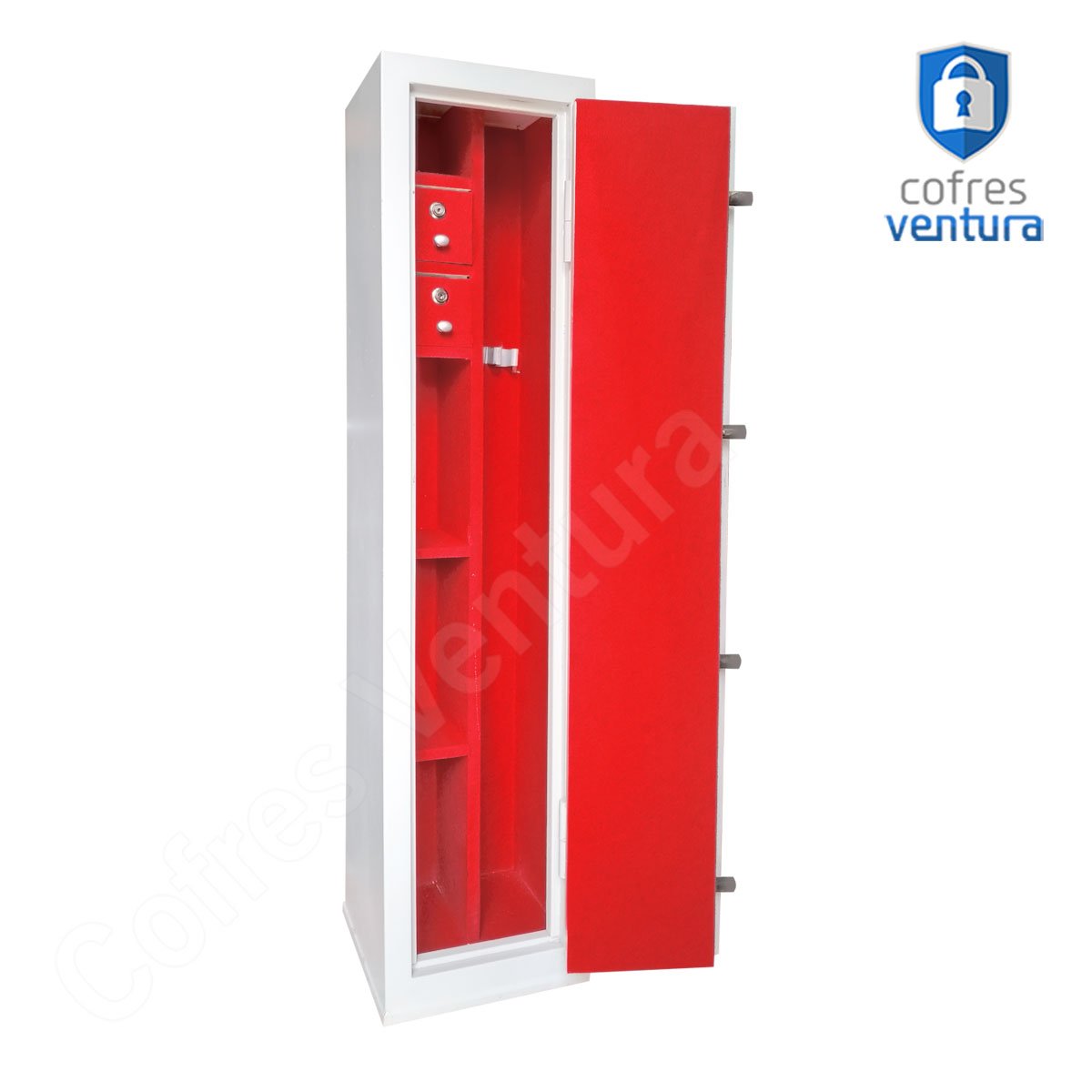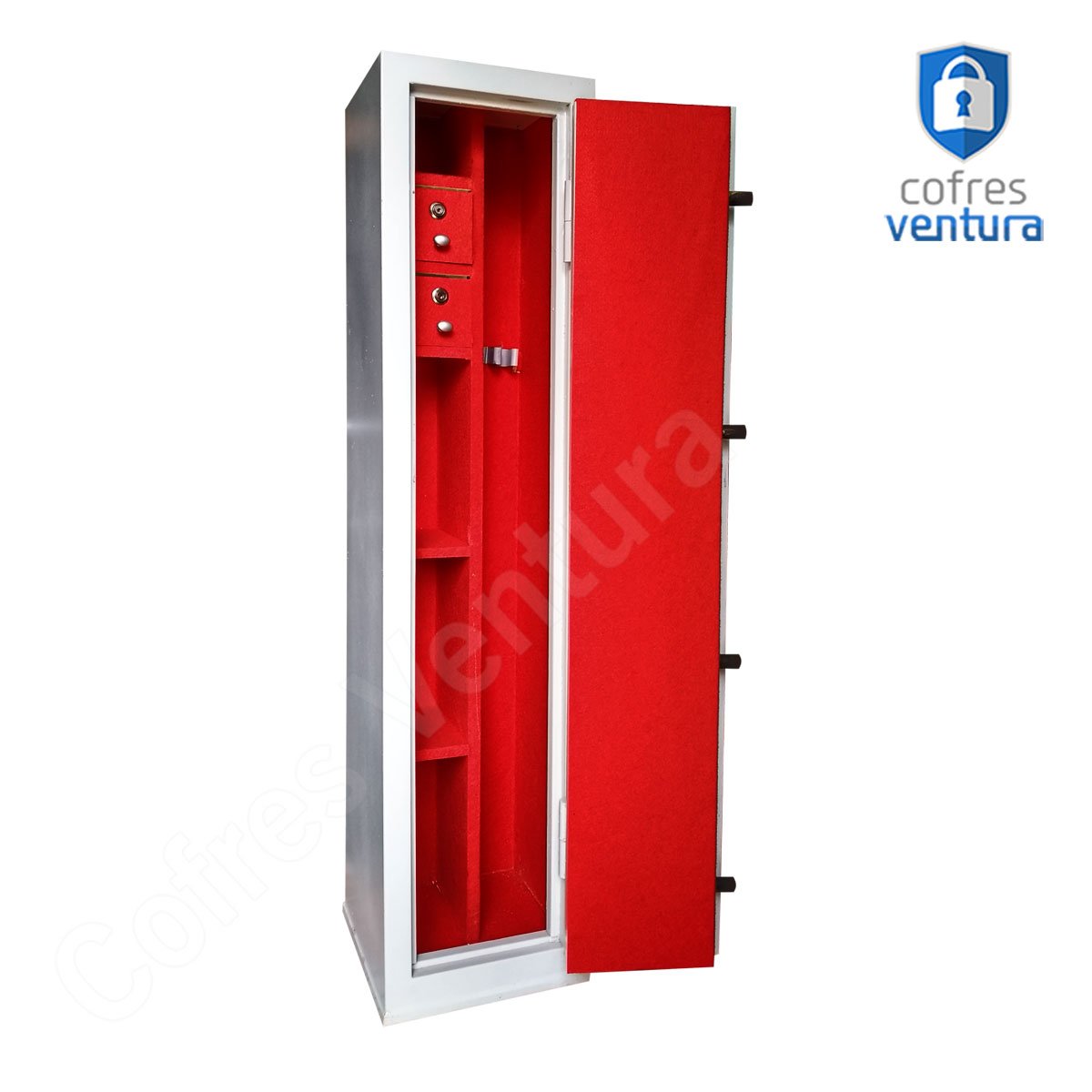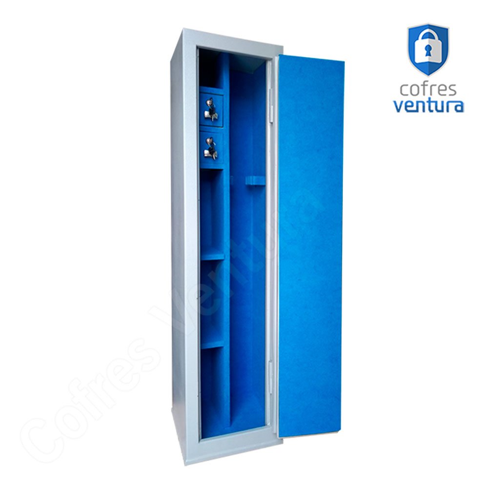 ITENS INCLUSOS | 01 cofre em aço 130 cm 03 Chaves 03 Prateleiras Suportes para armas Longas Manual do Produto + 04 furos na parte de trás para fixação. |