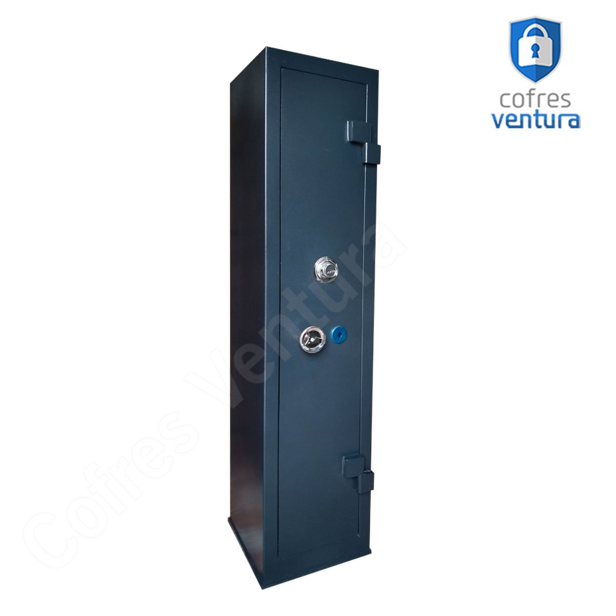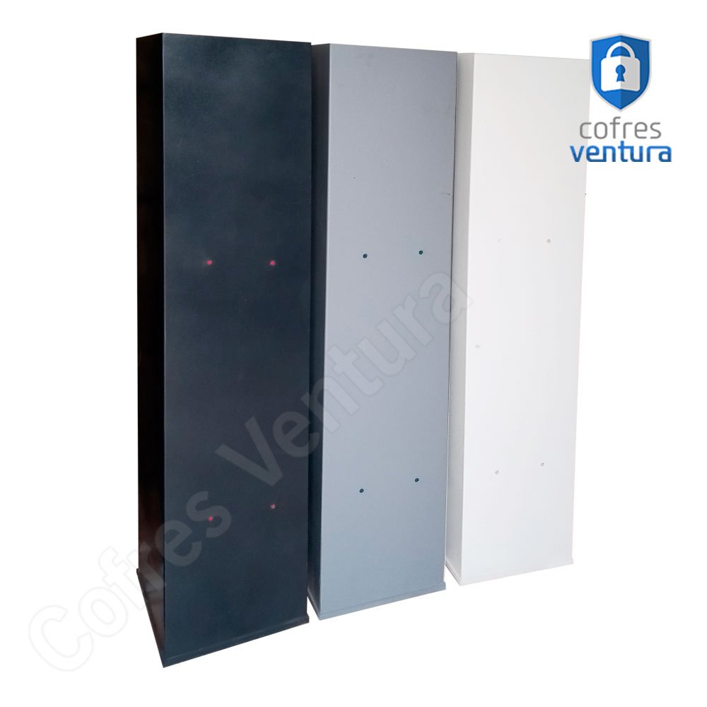 COR | Pintura em esmalte sintético nas cores cinza claro ou preto. Todas as partes do cofre recebem tratamento anti-fosfatizante e anti-ferrugem |