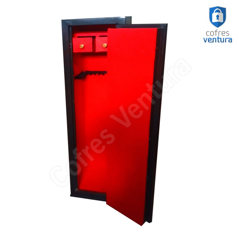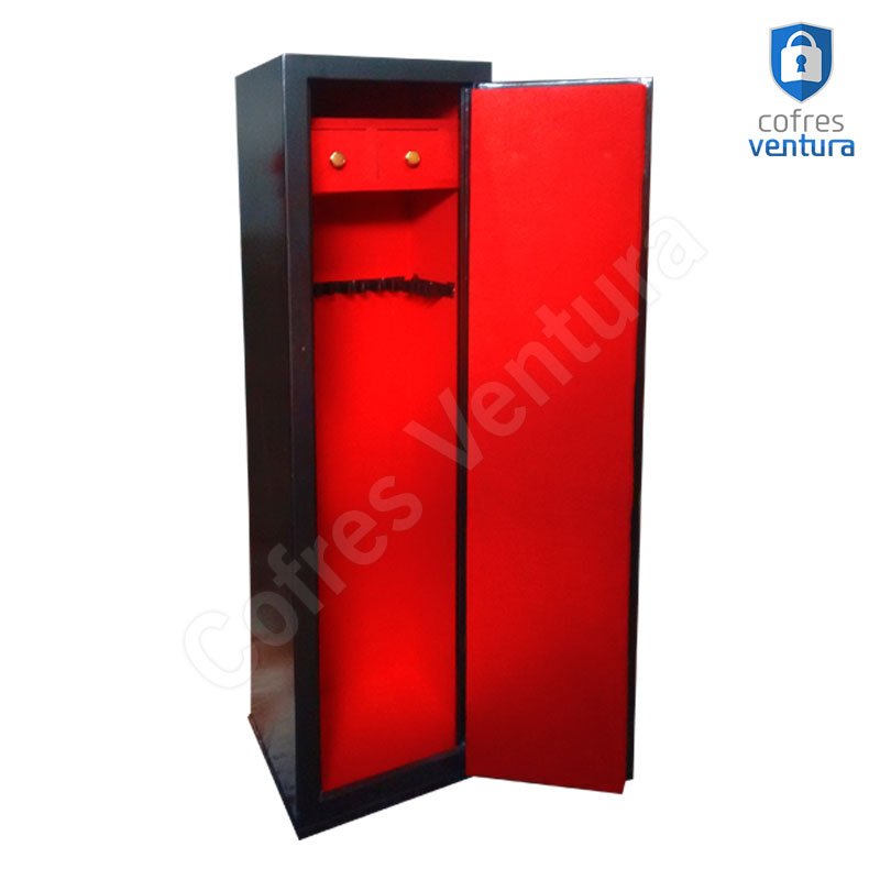 ITENS INCLUSOS | 01 cofre em aço 145 cm 03 Chaves 02 Gavetas Suportes para armas Manual do Produto + 04 furos na parte de trás para fixação |