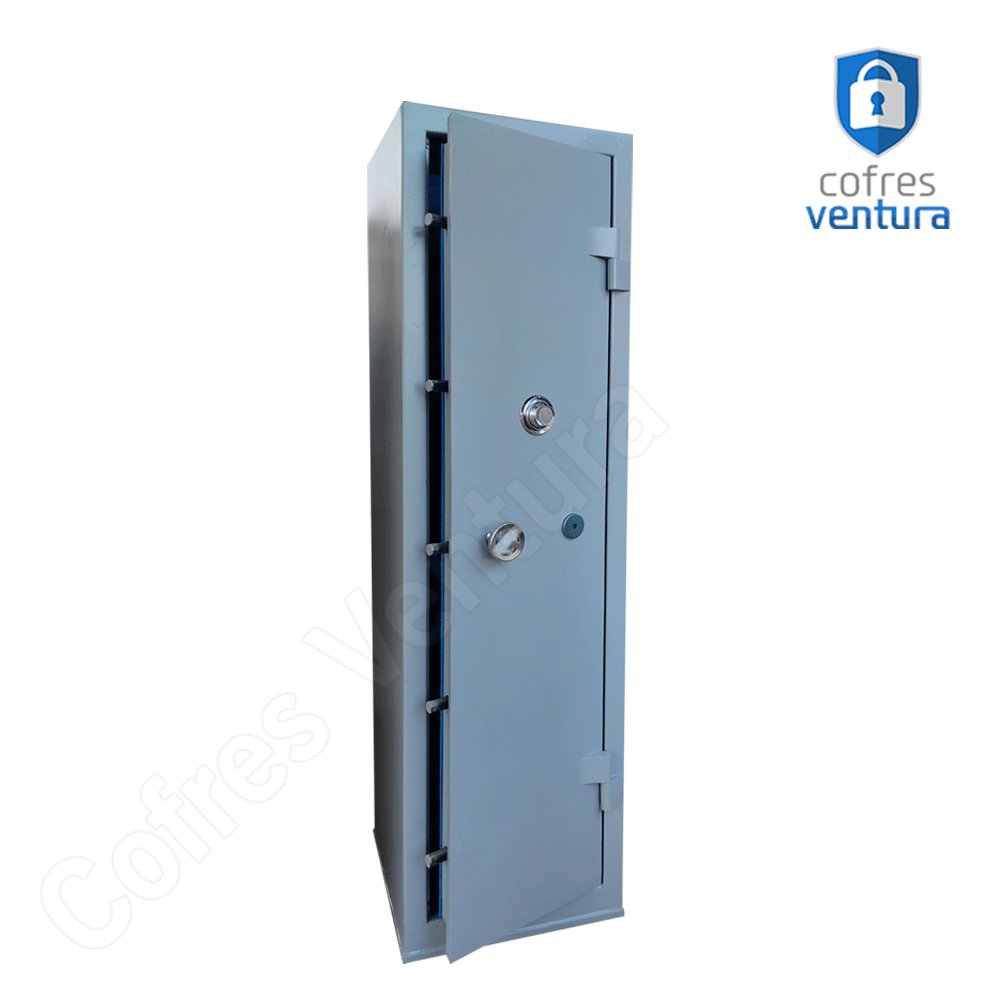 ESTRUTURA DO COFRE | Gabinete fabricado em chapa de aço de alta espessura e a porta em chapa de aço de 3 mm; Trava com 04 ferrolhos de aço de 23mm de diâmetro; |