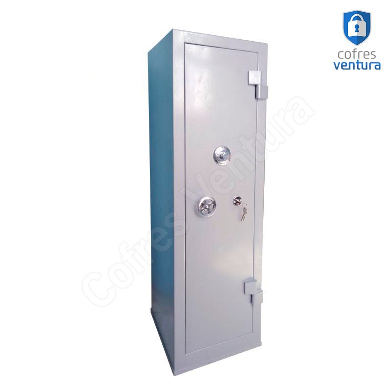 ESTRUTURA DO COFRE | Gabinete fabricado em chapa de aço de 1,27mm de espessura e a porta em chapa de aço de 3 mm; Trava com 04 ferrolhos de aço de 18mm de diâmetro; |